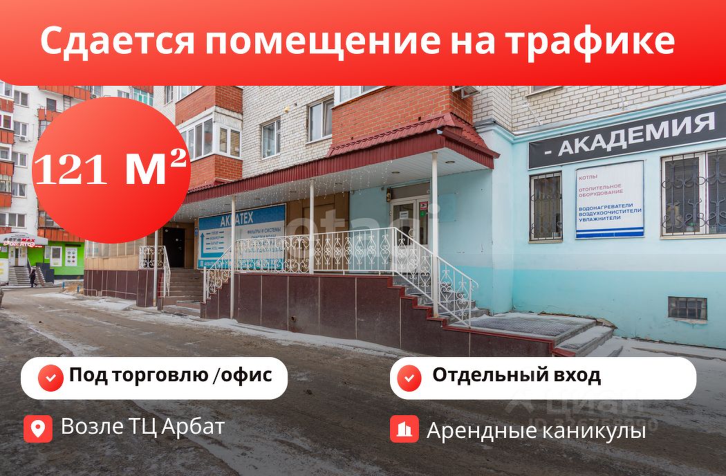 - помещение расположено сразу за ТЦ Арбат, возле дороги, высокий трафик.