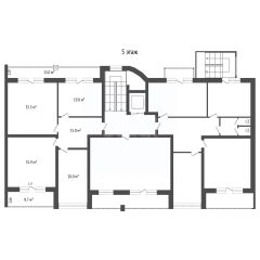 Офисное помещение занимает одно крыло на 5-м этаже 9-этажного офисного здания.