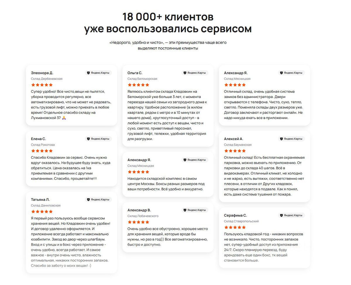 Кладовкин - Первые в России автоматизированные склады временного хранения вещей. Большой выбор боксов в Москве от 1 м² по доступным ценам. Более 40 складов индивидуального хранения , расположенных в Москве и области. Предоставляем круглосуточный доступ к складам через мобильное приложение. Во всех складах присутствует видеонаблюдение 24-7, регулярная уборка помещений, а также стабильная температура.