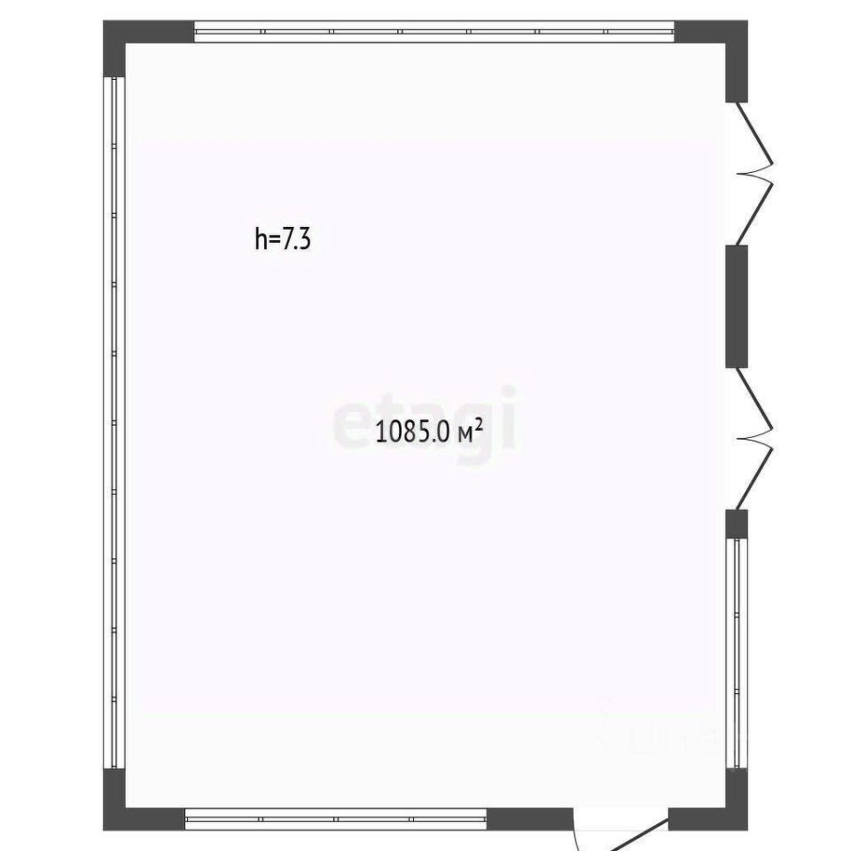 Высота до балки 7,3 м;