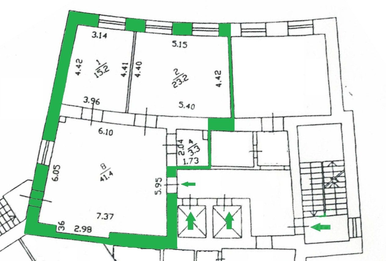 Отдельный офисный блок из трех кабинетов; Четвертый этаж, два лифта; Выполнен косметический ремонт; Установлены кондиционеры; Деловой центр города!