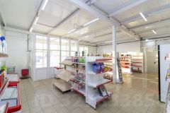 Внутри здания вас ждёт просторный торговый зал, удобные складские и подсобные помещения, комната для персонала, кабинет, санузел и котельная. К тому же, в помещении установлена холодильная камера. Все необходимые коммуникации уже подведены: электричество мощностью 15 кВт, водоснабжение, септик. Помещение полностью освобождено от мебели и стеллажей.