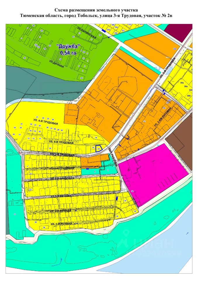 Адрес (местоположение) Тюменская область, город Тобольск, улица 3-я Трудовая, участок 2в, кадастровы номер: 72:24:0609005:109, площадь 1300 кв.м; разрешенное использование для индивидуального жилищного строительства; категория земель земли населенных пунктов.