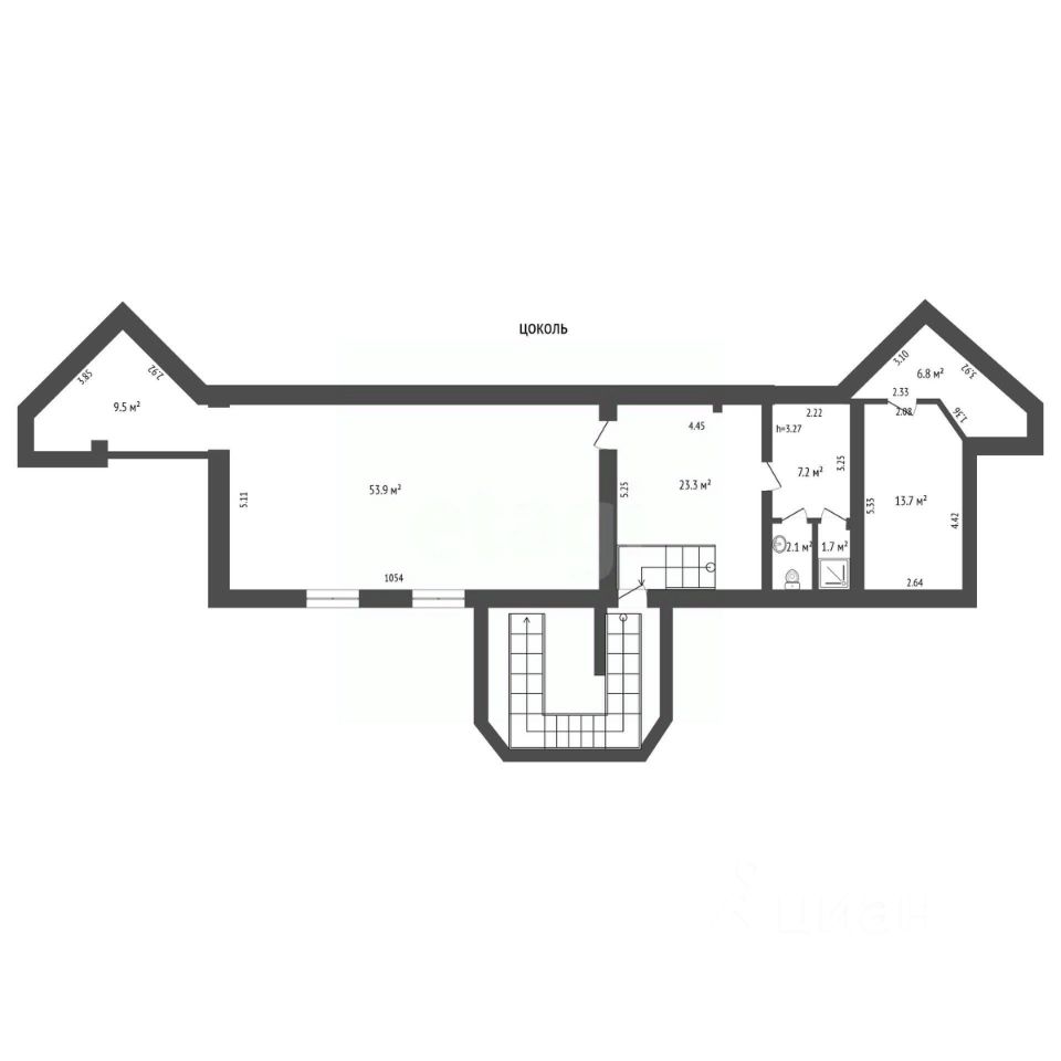Цокольный этаж - просторное помещение площадью 118,2 кв.м с окнами.