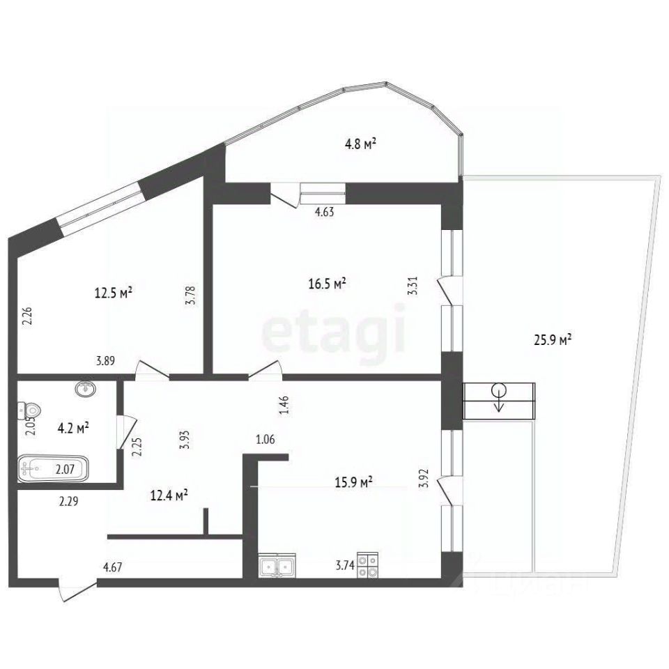 * 83,7 кв.м. (состоит из 4-х кабинетов) + 25,9 кв.м. - индивидуальная открытая терраса с прекрасным видом на центр города;