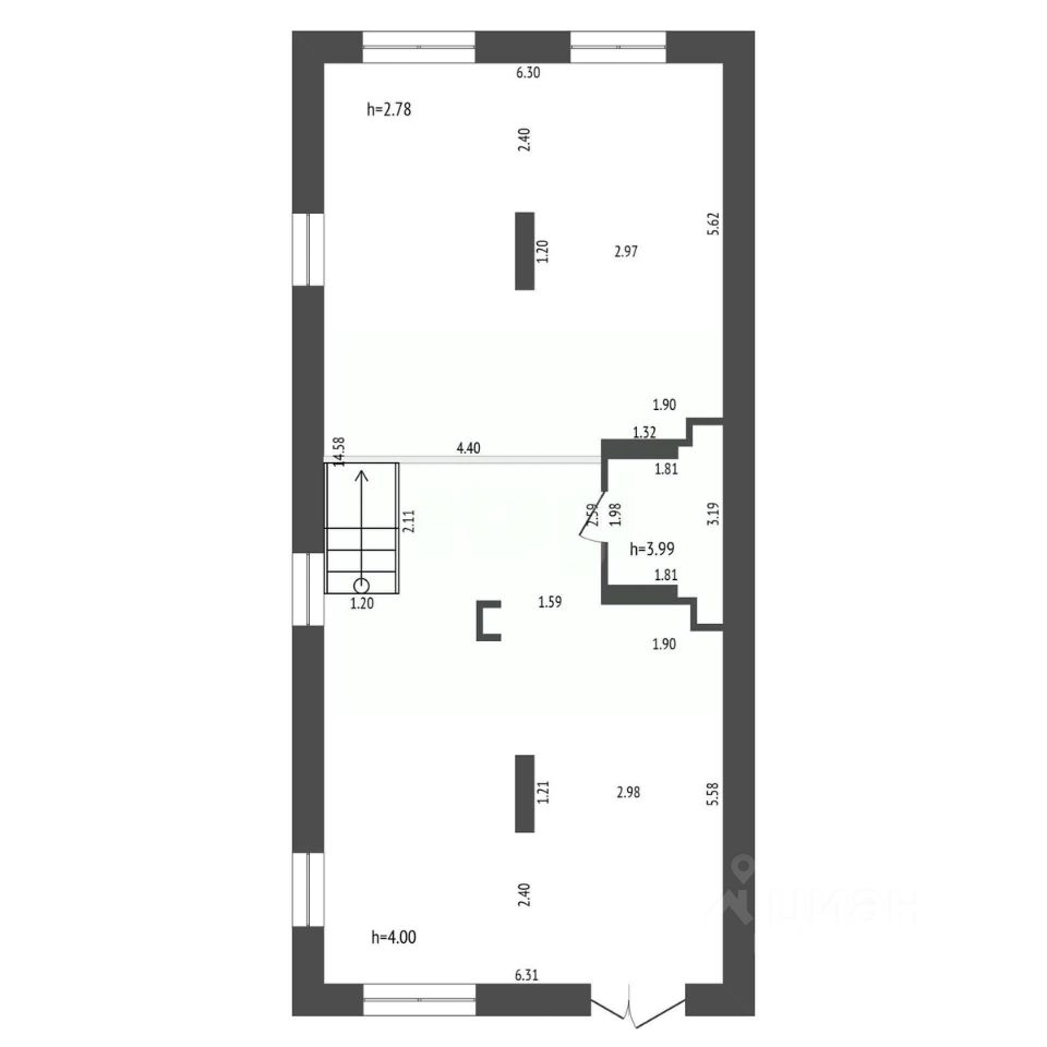 Высота потолков - 3,9м (1 уровень), 2,8м (2 уровень);