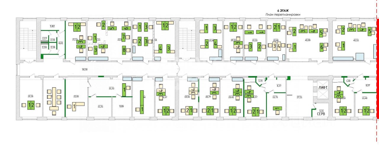 Сдам в аренду помещение, площадью 407 м2 БЦ "Бизнес пространство 6/9" по ул. Республики. Помещение состоит из более 20 отдельных кабинетов на 6 этаже с офисным ремонтом. На этаже санузлы и хозяйственные помещения. Площадь кабинетов 13 м2, до 42м2. В кабинетах установлены кондиционеры. 8 бесплатных мест на автocтoянке для арeндaторoв .