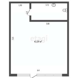 Oбщaя плoщaдь помещения 42 м2.