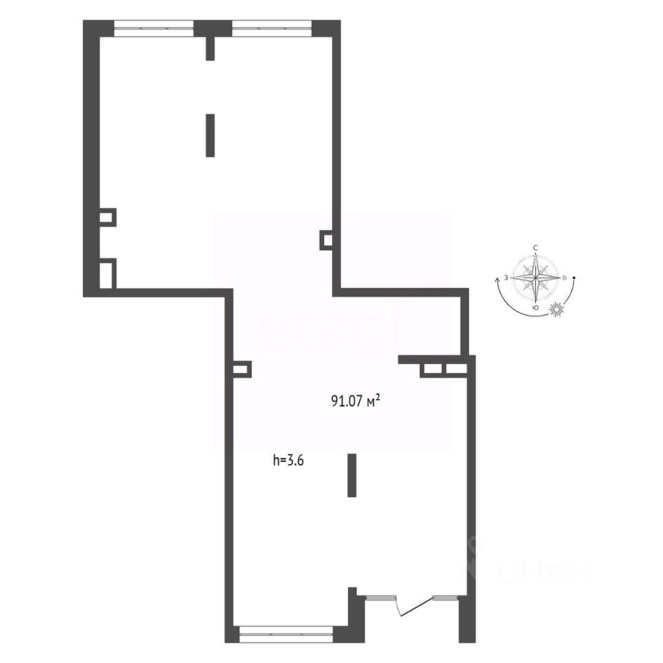 - Высота потолков: 3,6 м.