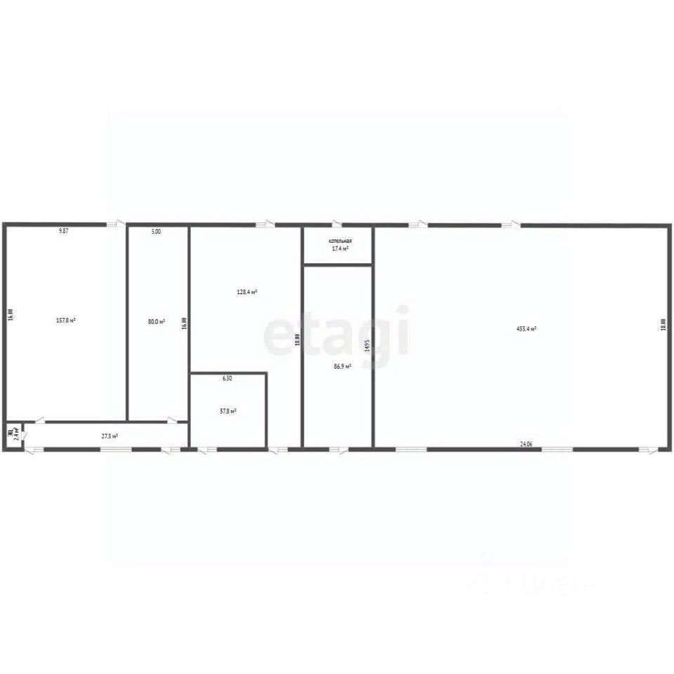Площадь помещения ~972 м²,