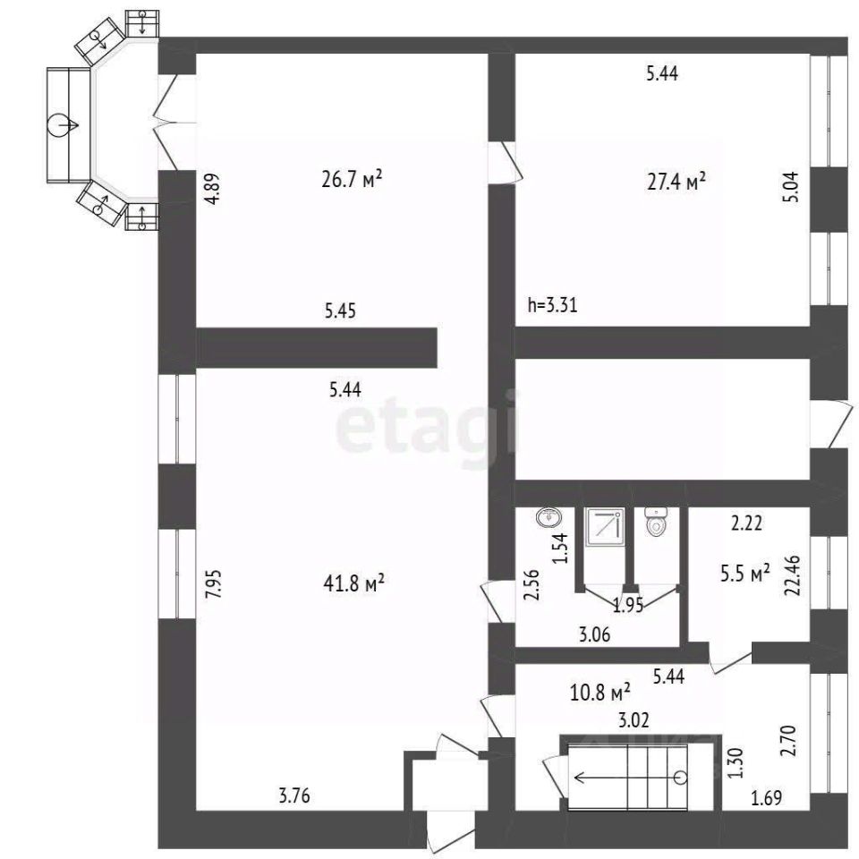 - Высота потолков 3 м