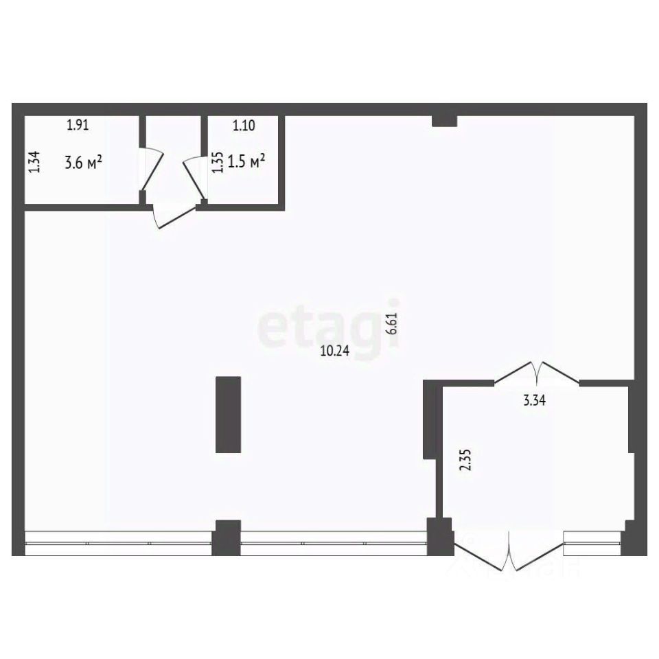Помещение площадью 66,6 кв.м, свободной планировки