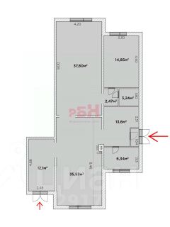 высокие потолки 3, 5 метра;