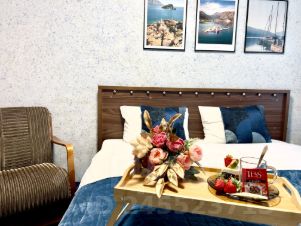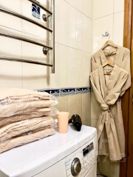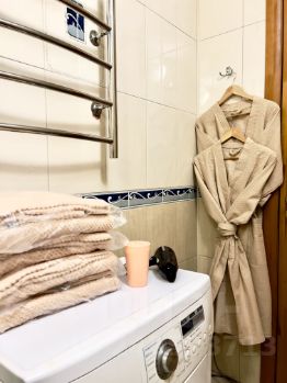 Наши апартаменты оснащены всем необходимым для комфортного пребывания: утюг, гладильная доска, стиральная машина, сушилка для белья, фен. И, конечно же, бесплатный Wi-Fi и телевизор для вашего удобства.