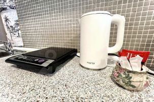 В кухне вы найдете всю современную бытовую технику: СВЧ-печь, плиту, холодильник, электрочайник, а также посуду и кухонные принадлежности.
