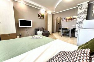 Уютная студия с полным комплектом удобств рядом с ЖД вокзалом в центре города.