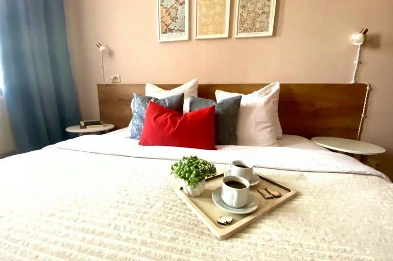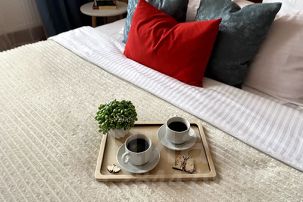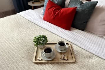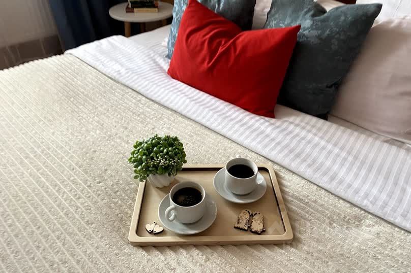 Одна двуспальная кровать king size с удобным матрасом, раскладной полутараспальный диван для комфортного сна. Качественное постельное белье.