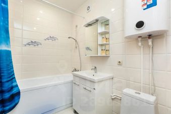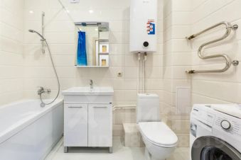 В санузле ванна, унитаз, тумба с раковиной, водонагреватель (на случай отключения горячей воды)