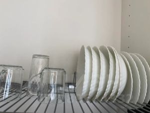 - Кухня оснащена: холодильником, плитой, духовкой, чайником, микроволновкой. Укомплектована посудой для готовки еды. В квартире всегда есть чай, кофе, сахар, соль, растительное масло.