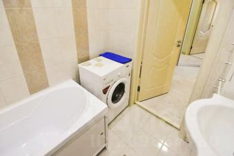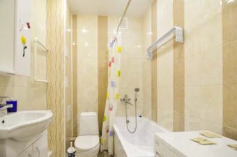 Совмещенный санузел, туалет, ванна, стиральная машина, водонагреватель.