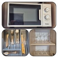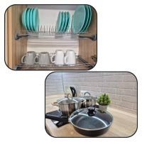 - На кухне имеется вся необходимая посуда для приготовления и принятия пищи; СВЧ-печь, эл.плита с духовкой, холодильник, электрочайник. А также чай, сахар, соль, специи.