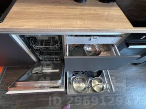 Просторная современная кухня с полным набором техники, включая посудомоечную машину;