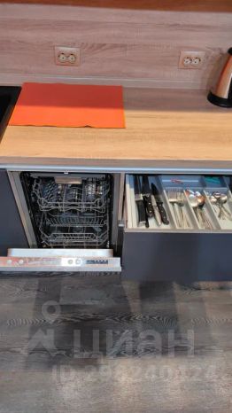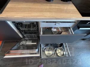 Просторная современная кухня с полным набором техники, включая посудомоечную машину;