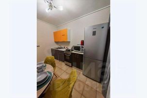 На кухне: кухонный гарнитур, стол, стулья, электроплита и холодильник, микроволновая печь.