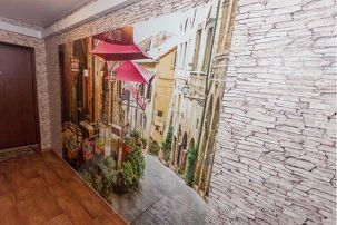 Оснащение: Студия поделена на зоны: кухня, обеденная зона, зона отдыха и сна. В зоне отдыха размещена двуспальная кровать. Кухня оборудована всем необходимым: варочная поверхность, микроволновая печь, холодильник, электрочайник, комплект посуды для приготовления пищи, стиральная машина автомат, а также набор тарелок и столовых приборов.