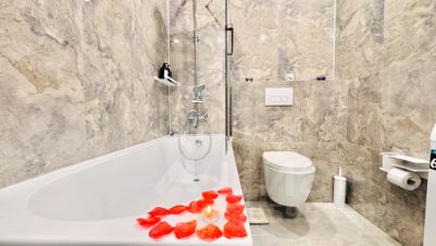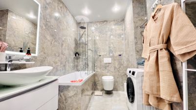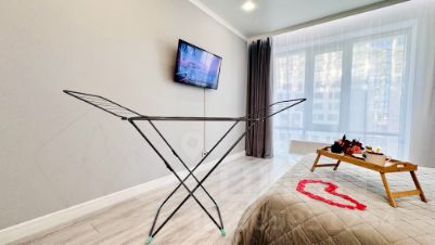 Наши апартаменты оснащены всем необходимым для комфортного пребывания: утюг, гладильная доска, стиральная машина, кондиционер, сушилка для белья, фен. И, конечно же, бесплатный Wi-Fi и два телевизора 43 дюймов со Smart TV для вашего удобства.