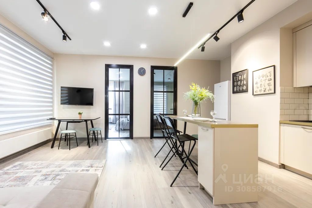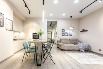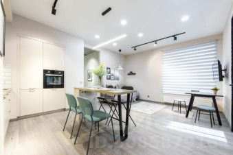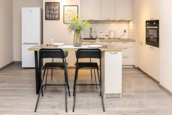 В кухне вы найдете всю современную бытовую технику: свч-печь, плиту, духовой шкаф, холодильник, электрочайник, а также посуду и кухонные принадлежности.