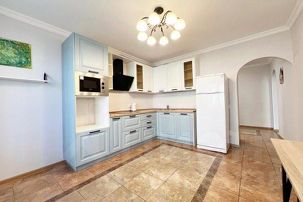 Полностью укомплектованная кухня: посуда и столовые приборы холодильник, плита , микроволновка , посудомоечная машина .