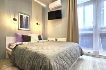 Светлая и уютная студия расположена на 8 этаже 9-этажного дома. Вечером отсюда открывается красивый вид на город. Квартира оборудована всем необходимым: удобная мебель, полноценная кухня, свежий текстиль и современная техника. А главное — установлен и работает кондиционер, чтобы вам было комфортно в любую погоду.