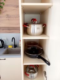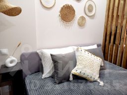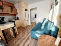 В апартаментах возможно размещение 4 гостей. Спальные места: двуспальная кровать, раскладной диван. Кухня оборудована необходимой посудой и техникой: холодильник, варочная поверхность, духовой шкаф, чайник, микроволновка. К услугам гостей также wi-fi, смарт телевизор с голосовым п