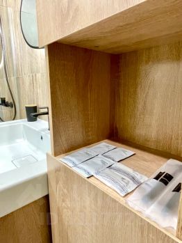 Дополнительно: постельное бельё, полотенца, сушилка для белья, зубной набор, мыло, гель для душа, шампунь, гладильная доска, набор посуды и столовых приборов, чай, кофе, сахар.
