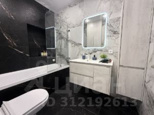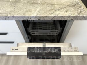 Современная бытовая техника: варочная панель, духовой шкаф, вытяжка, двухкамерный холодильник, электрочайник, СВЧ, фен, утюг, стиральная машина.