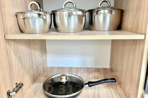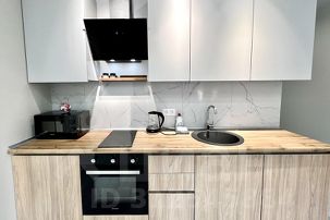 В кухне вы найдете всю современную бытовую технику: СВЧ-печь, плиту, холодильник, электрочайник, а также посуду и кухонные принадлежности.