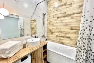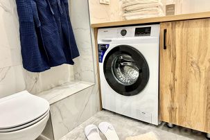 Наши апартаменты оснащены всем необходимым для комфортного пребывания: утюг, гладильная доска, стиральная машина, сушилка для белья. И, конечно же, бесплатный Wi-Fi и телевизор для вашего удобства.
