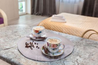 Апартаменты оборудованы мини-кухней с необходимой техникой для самостоятельного приготовления любимых домашних блюд.