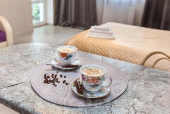 В апартаментах 4 спальных места: двуспальная кровать и раскладной диван. Апартаменты оборудованы необходимым для комфортного проживания: постельное бельё, полотенца, мыльные принадлежности, кондиционер, фен, утюг, чайник, микроволновая печь, телевизор, стиральная машина и посуда. Доступен безлимитный Wi-Fi.