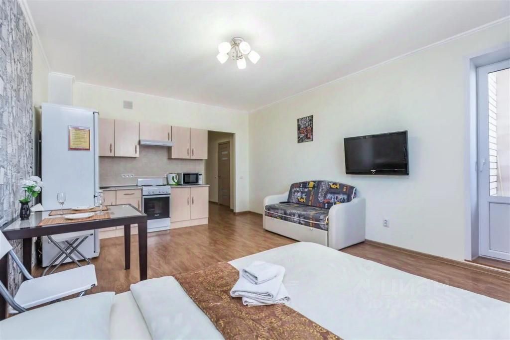 Апартаменты студия в светлых тонах в новостройке находятся в Тюмени. В шаговой доступности находятся центральная улица Республики, дворец культуры "Строитель" и выставочный зал. Апартаменты находятся на закрытой территории.