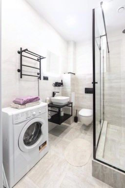 Удобно для гостей с ограниченными возможностями: на верхние этажи гостей поднимает лифт. Дополнительно: банкомат, индивидуальная регистрация заезда и отъезда и гладильные услуги. Персонал апартаментов говорит на русском.