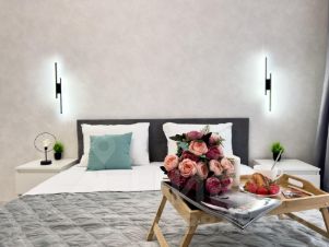 Наши апартаменты оснащены всем необходимым для комфортного пребывания: утюг, гладильная доска, стиральная машина, сушилка для белья, фен. И, конечно же, бесплатный Wi-Fi и телевизор для вашего удобства.
