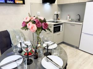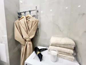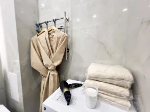 Наши апартаменты оснащены всем необходимым для комфортного пребывания: утюг, гладильная доска, стиральная машина, сушилка для белья, фен. И, конечно же, бесплатный wi-fi и телевизор для вашего удобства.
