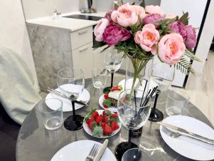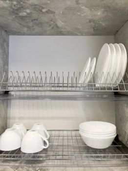 В кухне вы найдете всю современную бытовую технику: свч-печь, плиту, холодильник, электрочайник, а также посуду и кухонные принадлежности.