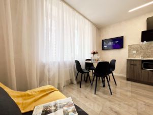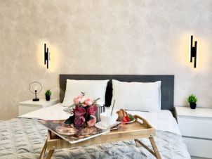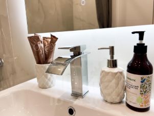 Наши апартаменты оснащены всем необходимым для комфортного пребывания: утюг, гладильная доска, стиральная машина, сушилка для белья, фен. И, конечно же, бесплатный Wi-Fi и телевизор для вашего удобства.