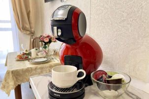 Также предоставляется кофе в капсулах в ассортименте за дополнительную плату. Стоимость и наличие кофемашины необходимо уточнять у сотрудников объекта размещения.