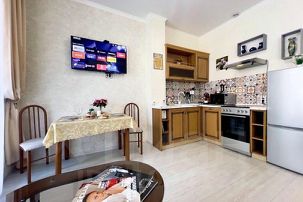 Наши апартаменты оснащены всем необходимым для комфортного пребывания: утюг, гладильная доска, стиральная машина, сушилка для белья. И, конечно же, бесплатный Wi-Fi и телевизор для вашего удобства.