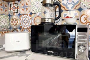 В кухне вы найдете всю современную бытовую технику: СВЧ-печь, плиту, холодильник, электрочайник, а также посуду и кухонные принадлежности.