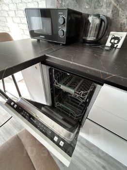 на кухне: холодильник, СВЧ печь, плита , чайник, посудомоечная машина